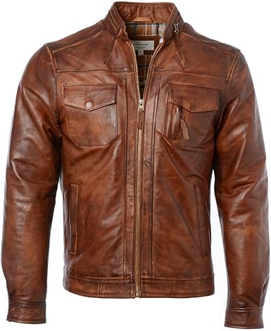 Brown Ashwood Leather Biker Jacket Timber Etsy Leather Jacket Men Mens Leather Jacket Biker Lambskin Jacket
