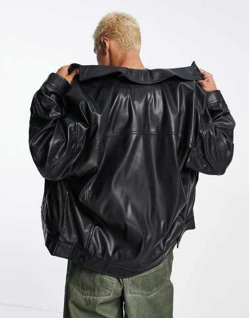 Asos Design Oversized Western Faux Leather Jacket In Black Asos