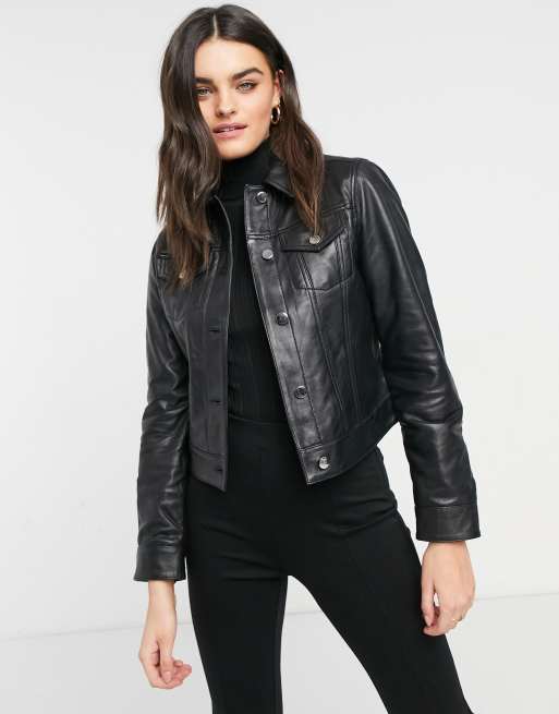 Lab Leather Trucker Jacket In Black Leather Asos